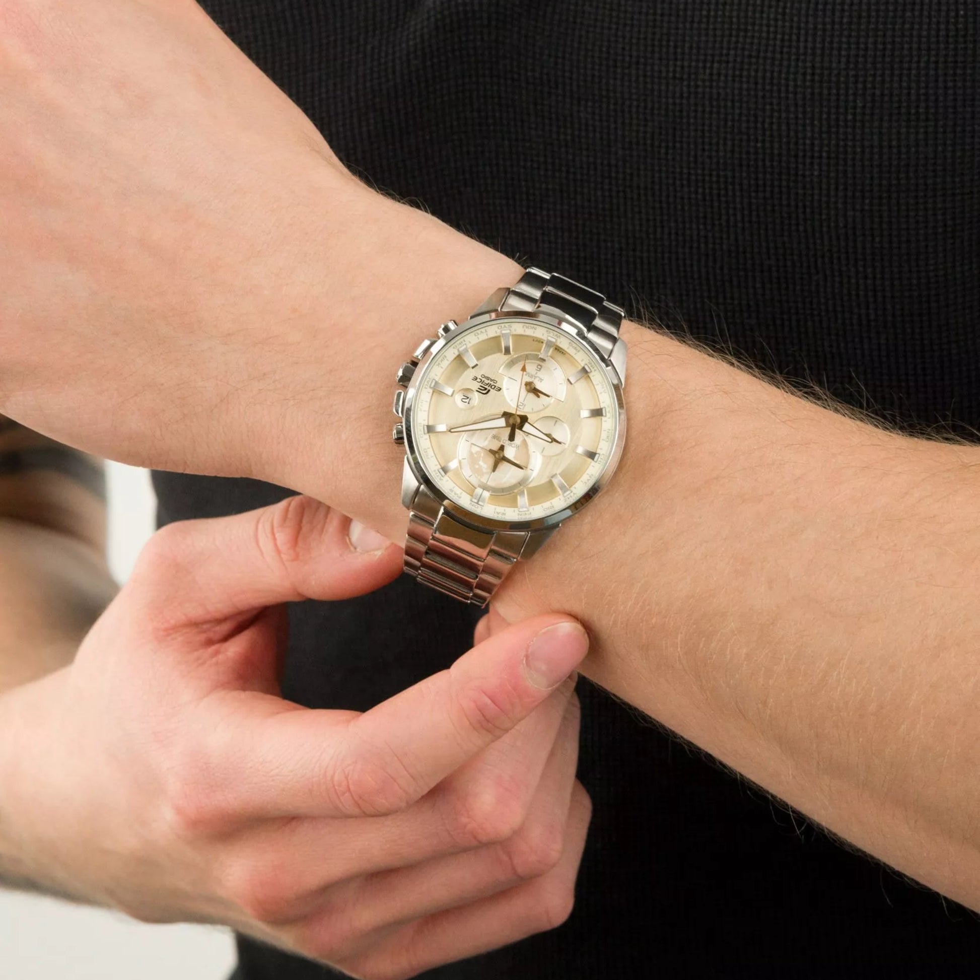 Il Casio Edifice ETD-310D-9AVUEF è un cronografo elegante e moderno, parte della collezione Edifice Premium, che unisce stile contemporaneo, funzionalità avanzate e qualità giapponese. La cassa in acciaio inox e il bracciale argentato si abbinano perfettamente al quadrante color champagne, per un look raffinato e versatile, ideale per l’uomo dinamico.