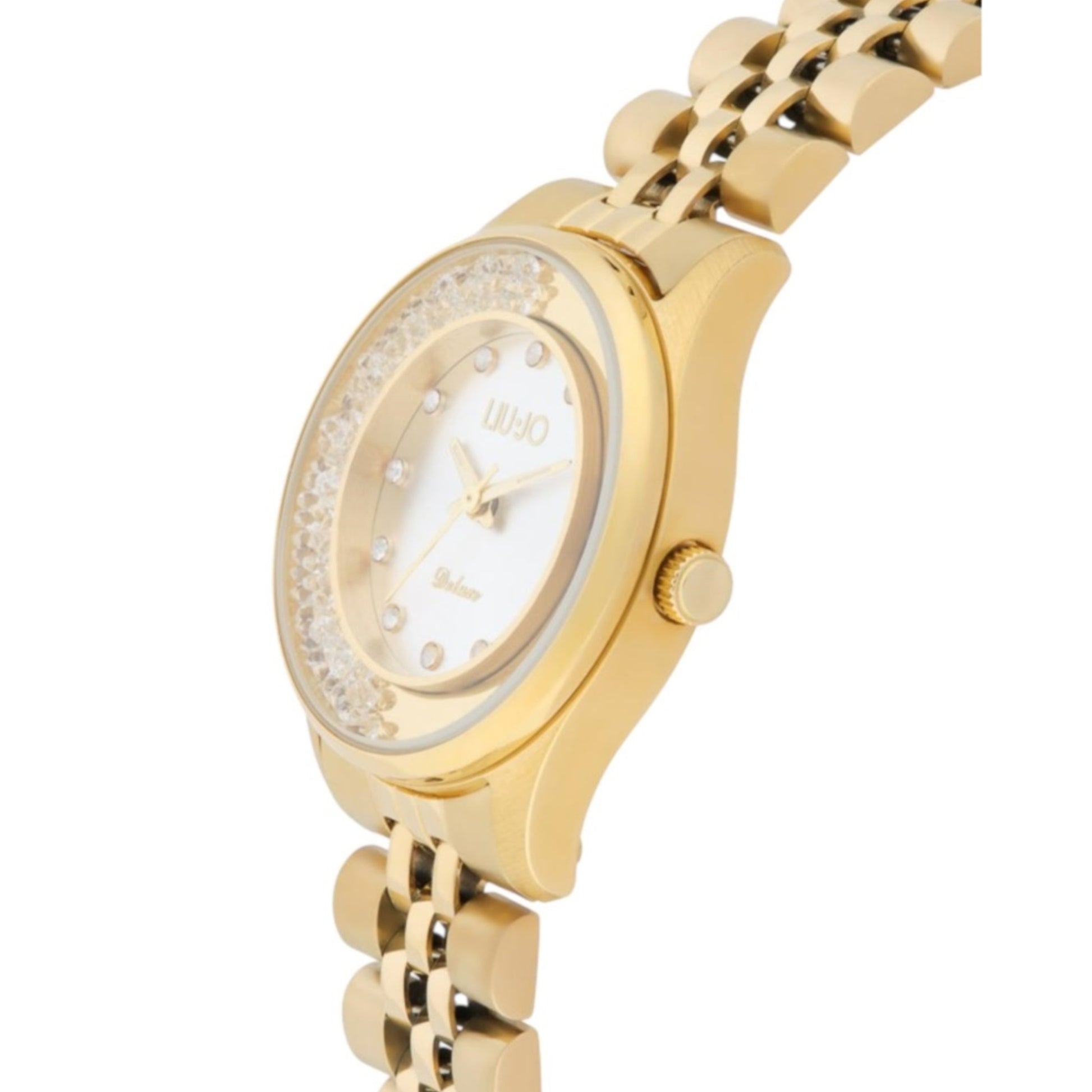 Il bracciale in acciaio dorato completa l’estetica con un tocco prezioso e femminile, mentre il movimento al quarzo garantisce precisione e affidabilità quotidiana. Grazie alla resistenza all’acqua di 5 ATM e al vetro minerale, questo orologio è ideale per l’uso di tutti i giorni, senza rinunciare allo stile iconico firmato Liu Jo.