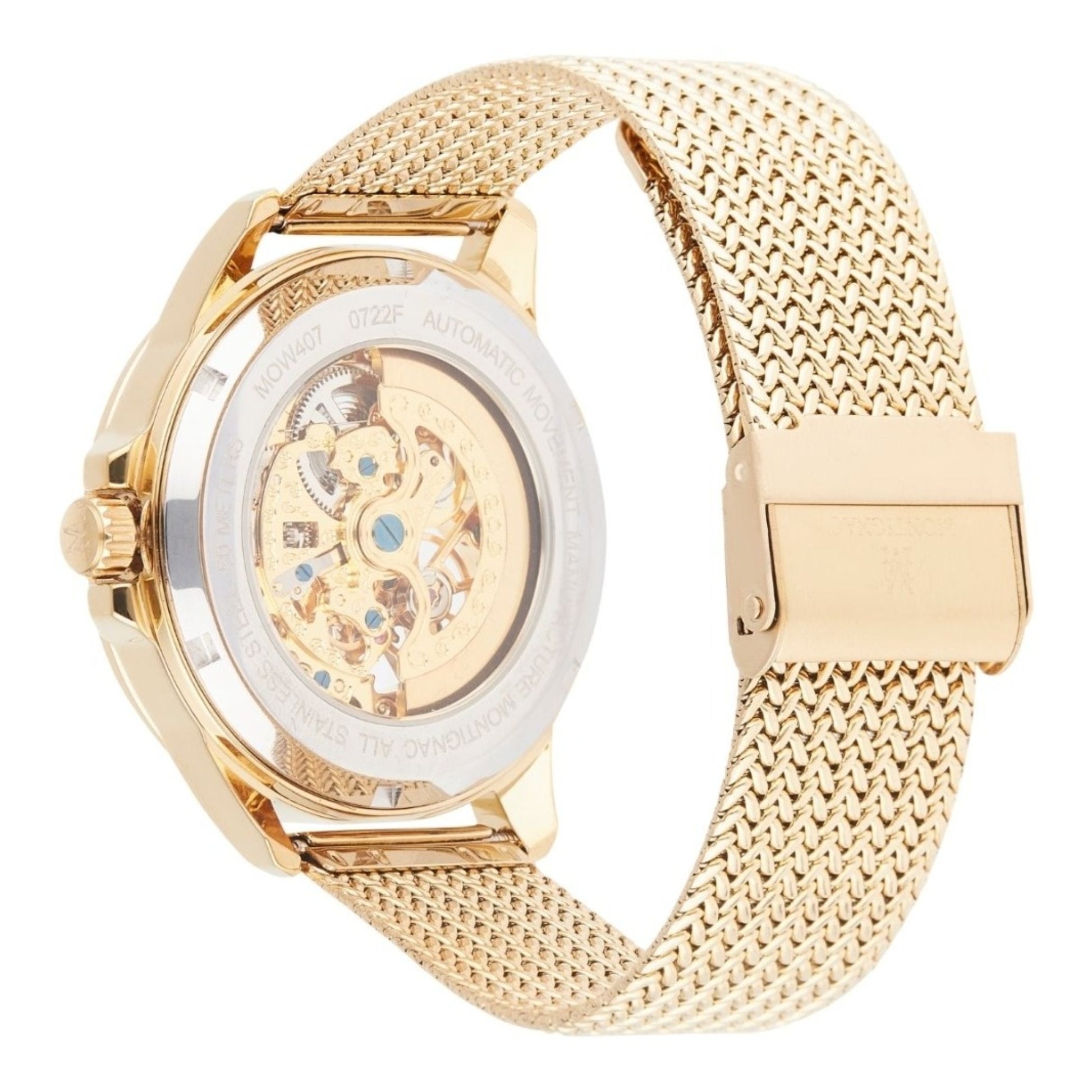 Il bracciale in maglia milanese dorata, caratteristico della Maison, aggiunge comfort e raffinatezza, rendendo questo modello ideale per chi ricerca un orologio distintivo e contemporaneo. Con vetro minerale, impermeabilità 5 ATM e costruzione in acciaio, il MOW407 fonde semplicità strutturale, fluidità visiva e tecnica meccanica.