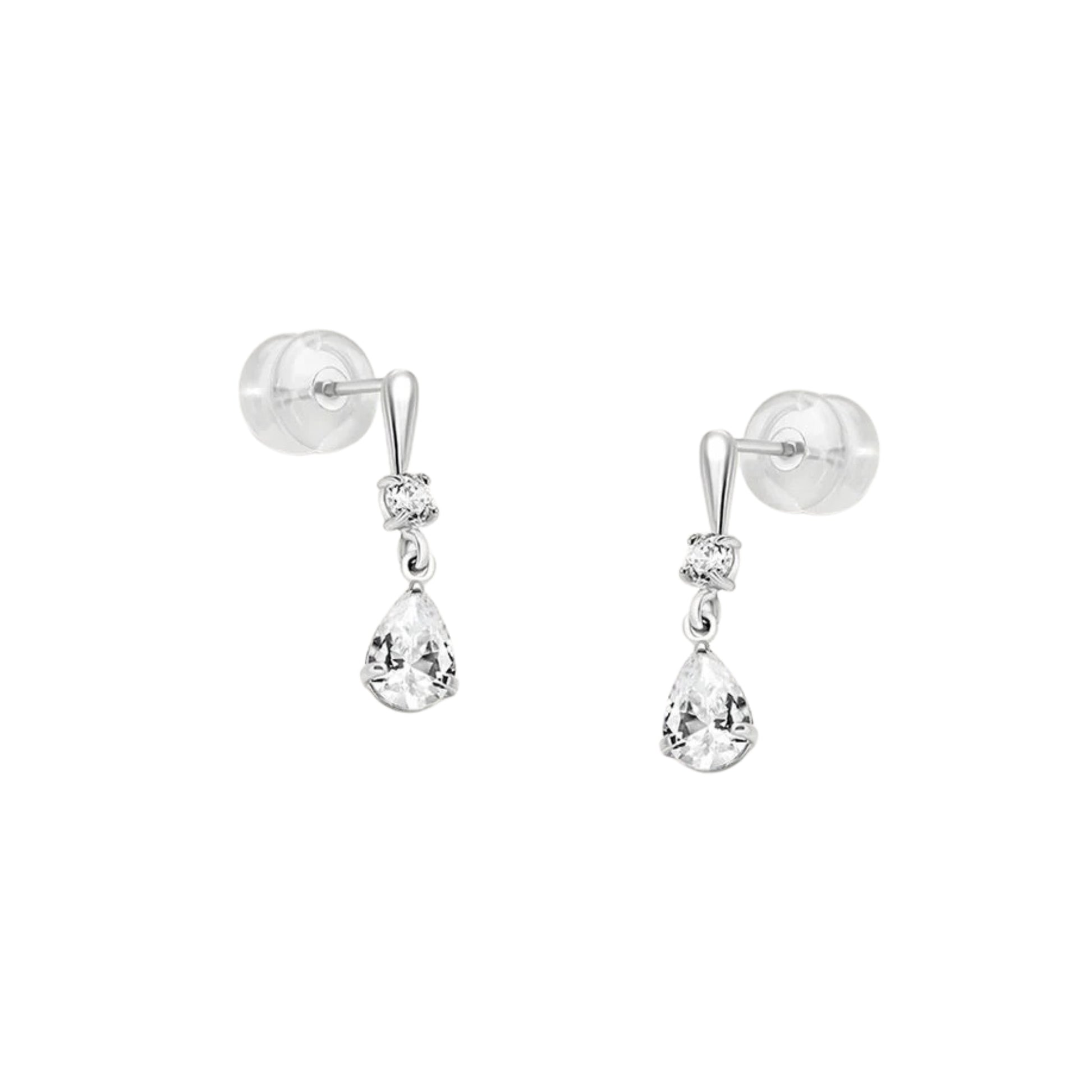 Il design a doppia pietra dona luminosità al viso, rendendo questi orecchini ideali per completare look raffinati o aggiungere un tocco di classe al quotidiano. La chiusura a farfallina in silicone garantisce comfort e sicurezza, anche per un uso prolungato.